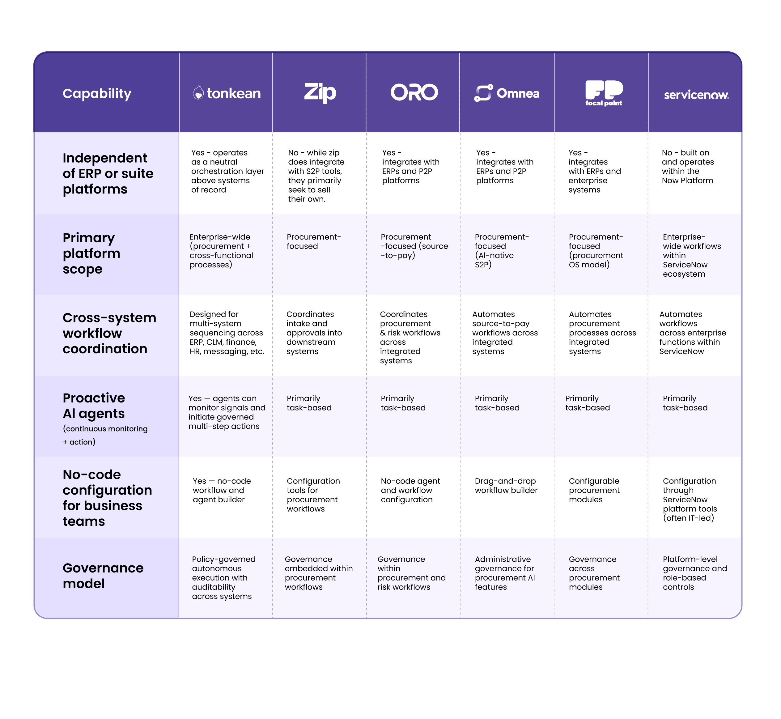 ORO’s orchestration capabilities are centered around structuring and managing procurement processes rather than operating as a flexible, system-agnostic orchestration layer across the entire enterprise stack.